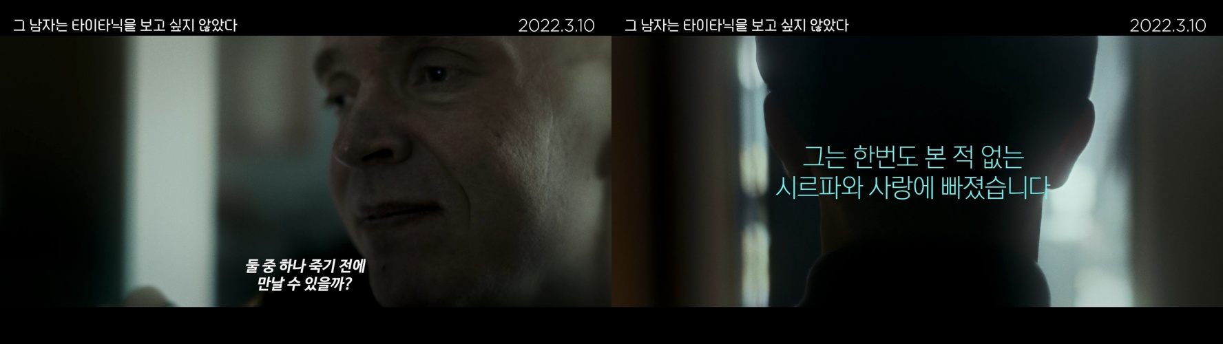 한편 개봉 확정과 함께 공개된 <그 남자는 타이타닉을 보고 싶지 않았다> 메인 포스터는 주인공 야코의 얼굴 클로즈업을 배경으로 디자인 되었는데, 얼굴 위에 점자가 전면에 배치되어 난치병으로 시력을 잃은 주인공의 장애를 표현했다. 이어 공개된 메인 예고편에서는 난치병으로 시력을 잃고 걷는 것이 불편해진 야코 뿐만 아니라 그의 연인인 시르파 또한 보행기에 몸을 의지해야만 하는 병을 앓고 있음을 암시하며 보는 이들의 마음을 안타깝게 한다. 하지만 이어지는 예고편의 자막에 따르면 야코는 한번도 본 적이 없는 시르파와 사랑에 빠졌다고 한다. 도대체 시르파는 누구이며, 한 눈에 봐도 쉽게 이해되지 않는 이 기상천외한 로맨스는 어떤 반전과 결말을 맞게 될까.